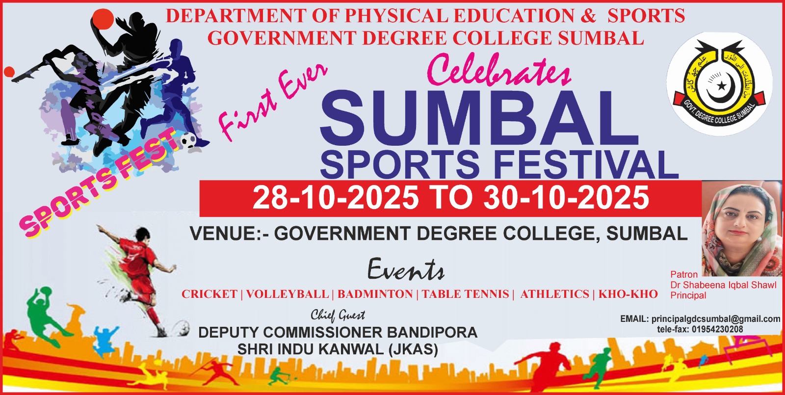 SUMBAL SPORTS FESTIVAL Held on: 28 Oct 2025 Department of Physical Education & Sports, GDC Sumbal Celebrates "SUMBAL SPORTS FESTIVAL" from 28-10-2025 to 30-10-2025.